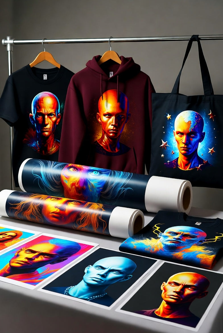 Specialty metallic and reflective DTF films that add luxury appeal and high-visibility effects to your designs. Metallic options create stunning shimmer and premium appearance, while reflective films provide safety and visibility features perfect for workwear, athletic apparel, and high-impact designs.