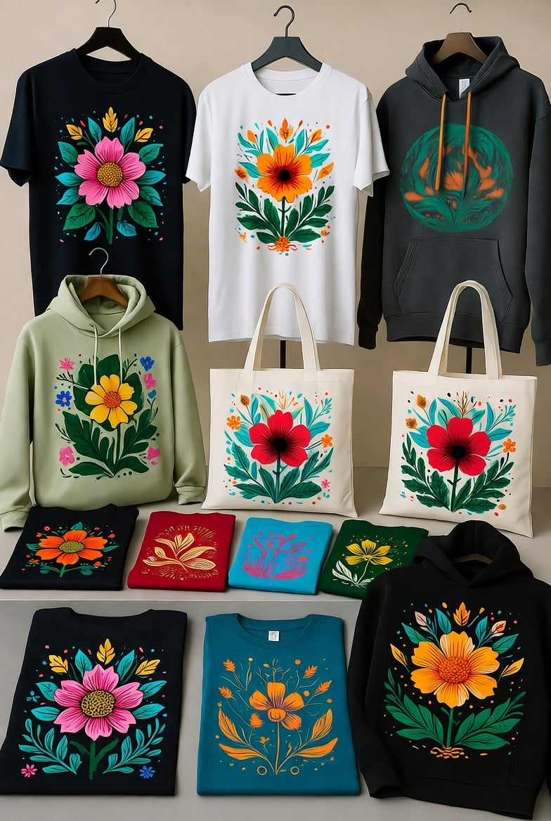 Versatile printing solution for branded merchandise, corporate apparel, and promotional items. DTF accommodates various fabric types and design complexities while maintaining cost-effectiveness for any order size.